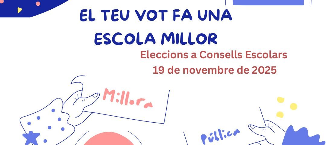 Estaria molt bé que, a partir del 11 al 17 de novembre (campanya electoral), compartireu el cartell a les vostres xarxes (whatsapp, telegram, instragram, etc) per animar a altres famílies a participar i a exercir el vot (presencial o no presencial).